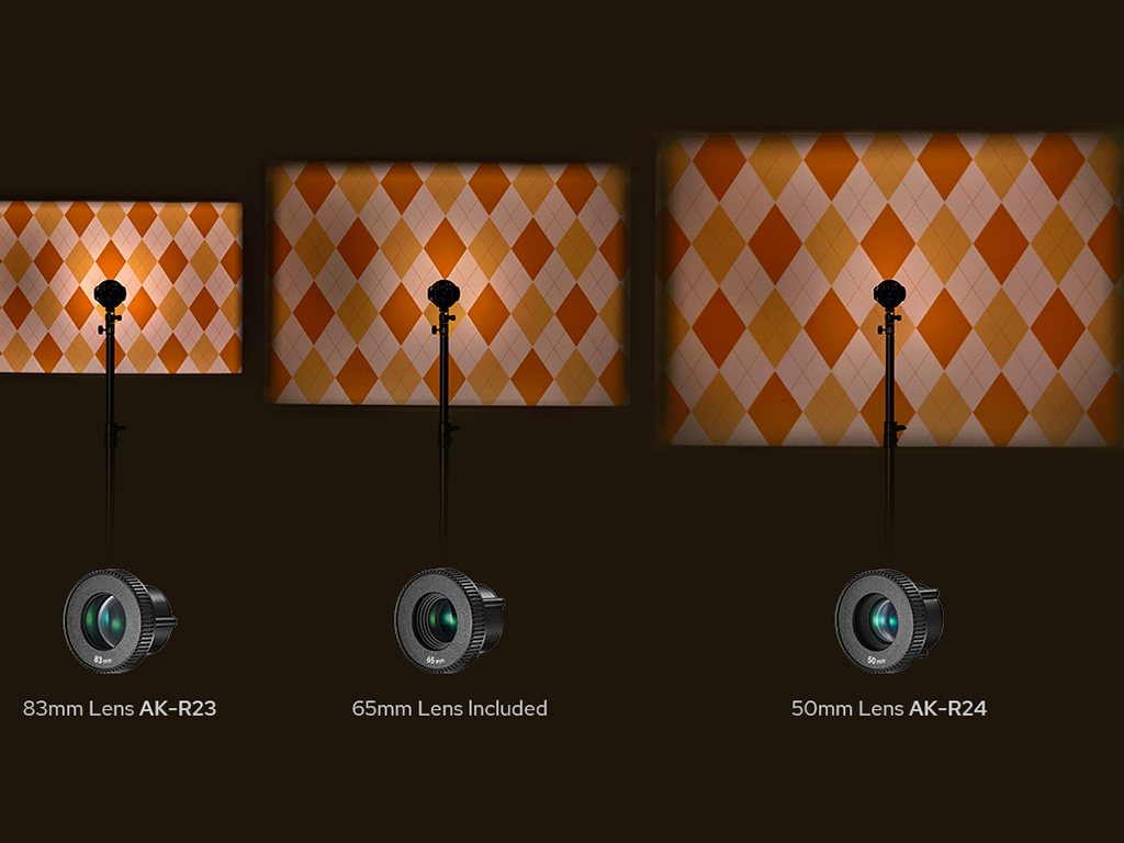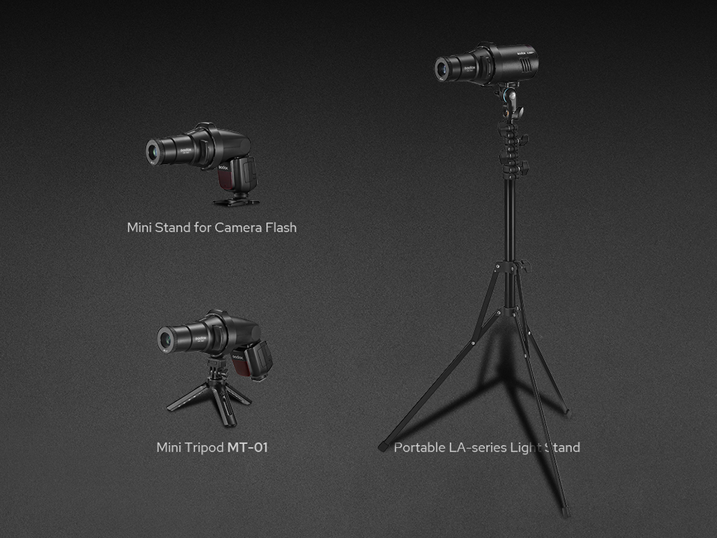 Tut ve SaklaAdaptörler üzerinde evrensel 1/4” montaj ile tasarlanan projektörü doğrudan ışık ayağına veya flaşla bağlayabilirsiniz. Kamera flaşları için, projektörü doğrudan ışık sehpasına takmak ışık açısını sabit bir şekilde sabitler ve ağırlığın neden olduğu aşağı eğilmeyi önler. Bir dizi destekleyici aksesuar, AK-R21'i tutmak ve saklamak için mükemmel bir seçimdir.