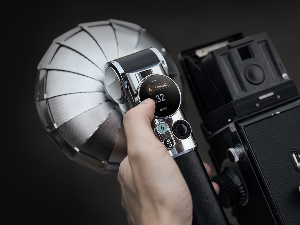 Retro Form, Modern TeknolojiLux Serisi Retro Kamera Flaşımıza en son eklenen Lux Master ile zamansız zarafet, son teknolojiyle buluşuyor. Klasik katlanır yelpaze tipi reflektör ve verimli renkli dokunmatik ekrana sahip olan Lux Master, geçmiş yılların nostaljik ışıltısını günümüzün modern rahatlığıyla zahmetsizce harmanlıyor.