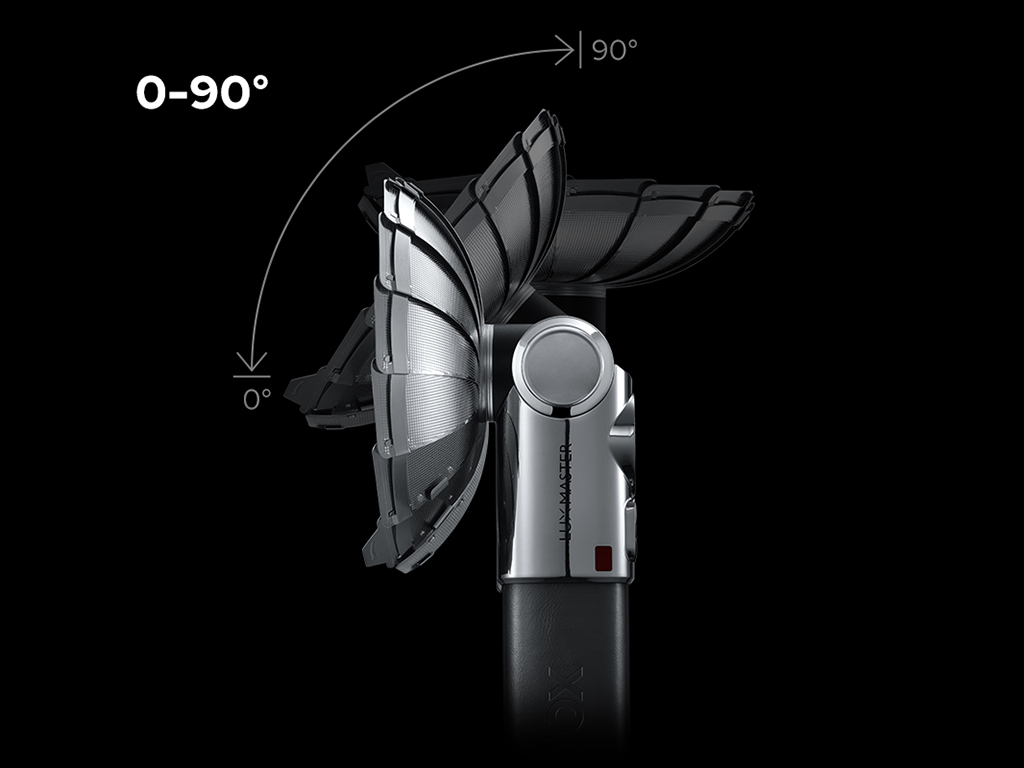 Eğilebilir Flaş KafasıSektirilebilir flaş efektleri elde etmek isteyen fotoğrafçılar için Lux Master, 0 ila 90 derece arasında ayarlanabilir bir flaş kafasına sahiptir. Ölçek tanımlaması, hassas açı ayarlamalarına olanak tanır ve doğal ve profesyonel ışık efektleri sağlar.