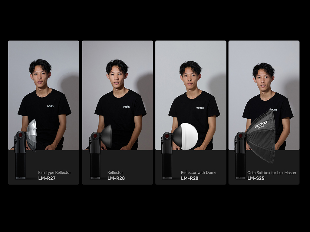 Çeşitli Aksesuarlar İle Şekillendirme İmkanıLux Master, aydınlatma efektlerinde daha fazla çok yönlülük için değiştirilebilir reflektörlerle birlikte gelir. Otomatik flaş modunda, dört reflektör türü arasında geçiş yapmak ve diyafram açıklığı ve ISO gibi ilgili parametreleri ayarlamak için reflektör simgesine dokunmanız yeterlidir.