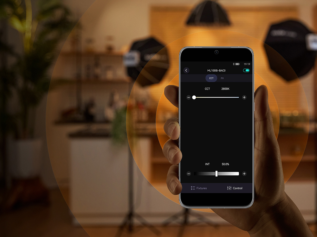 Hassas Aydınlatma KontrolüIşığınızın kontrollerini gövdede bulunan dahili ekran üzerinden veya “Godox Light” uygulamasını kullanarak sağlayabilir, parlaklığı ve efektleri kolayca ayarlayabilirsiniz. ML100Bi, uygulama üzerinden kablosuz kontrolü destekleyerek aydınlatmayı ihtiyaçlarınıza göre hassas bir şekilde uyarlamanıza olanak tanır.