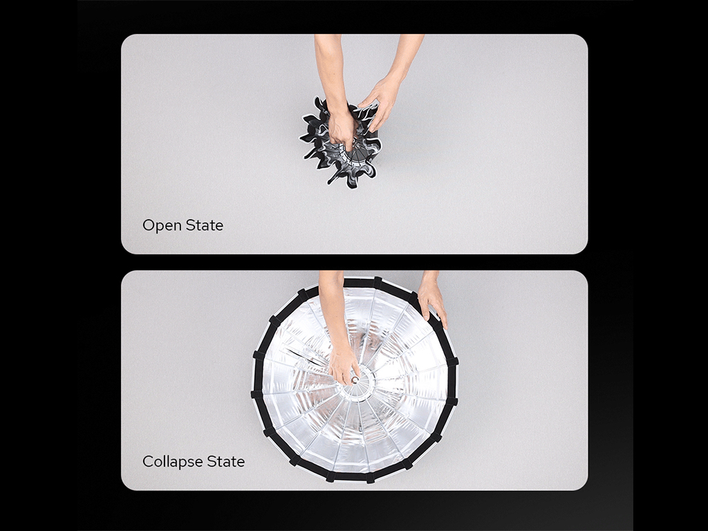 Hızlı Açılan MekanizmaArtık hantal yapı yok. Hızlı ve kolay serbest bırakma sistemi, kurulumu ve toplanmasını oldukça kolay bir hale getirir, göz açıp kapayıncaya kadar bir şemsiye gibi açılır. Bu softbox'ın Bowens mountunun yanında bir fermuar vardır, böylece ön difüzörü çıkarmadan softbox'ı kapatmak için düğmeye ulaşabilirsiniz.