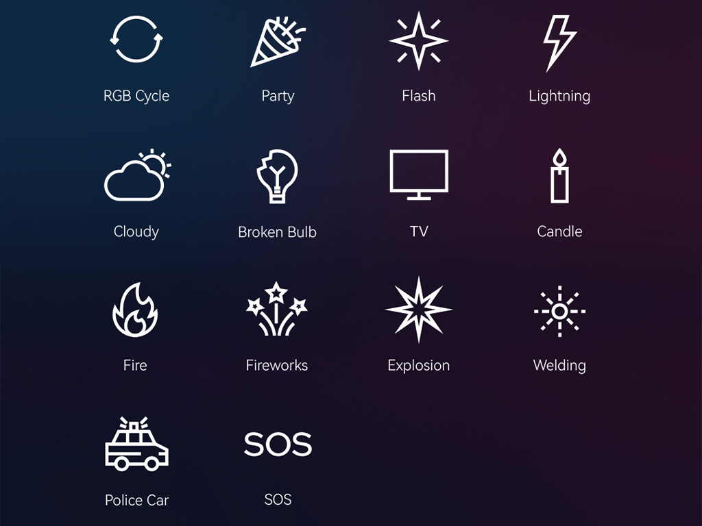 14 FX EfektiParti ve flaş gibi 14 yerleşik FX özel efektine sahip SL150R/300R, gerçekçi ışık efektlerini yansıtır. Sınırsız yaratıcı ifadeye imkan vererek parlaklığı ve değişim oranını ayarlayarak efektleri daha da özelleştirin.