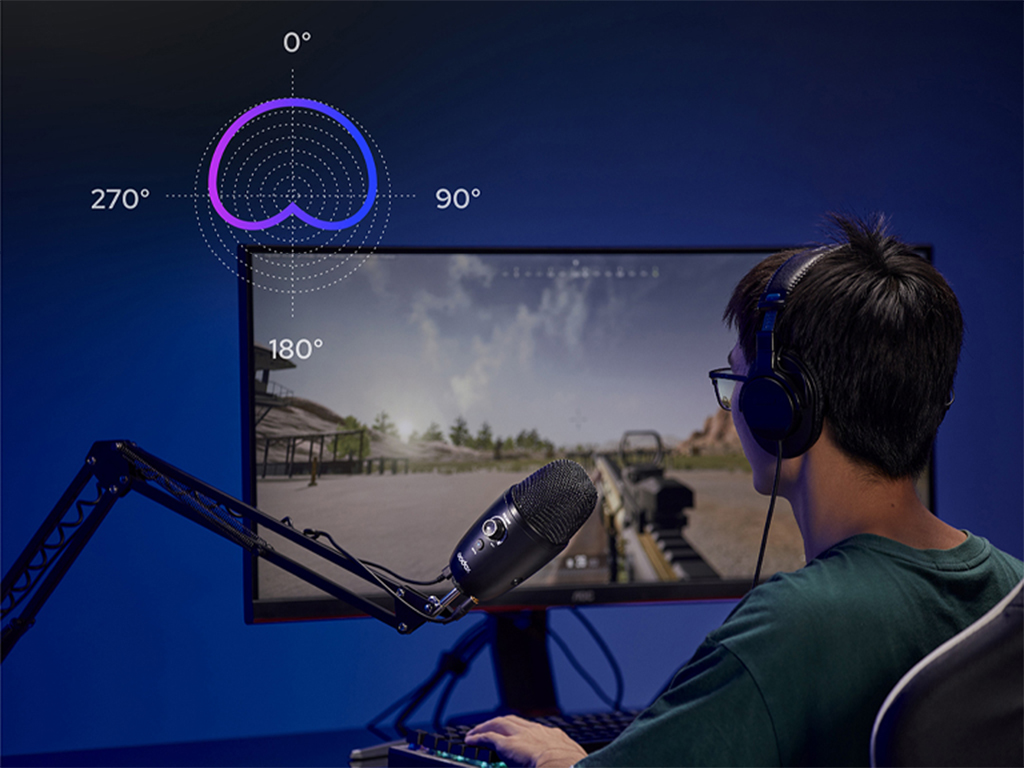 Diğer yönlerden gelen gürültüyü azaltırken sesi doğrudan mikrofonun önünde almak için kardioid modu kullanabilirsiniz. Podcasting, canlı akış, ders ve konuşma gibi tek kişilik kayıtlar için mükemmel bir seçim.