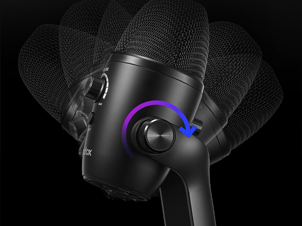 Mikrofon, farklı ses kaynaklarına uyum sağlamak için açıyı ayarlamakta serbesttir. Derecelendirme için stand üzerindeki düğmeyi gevşetin ve uygun bir konuma sabitleyin.