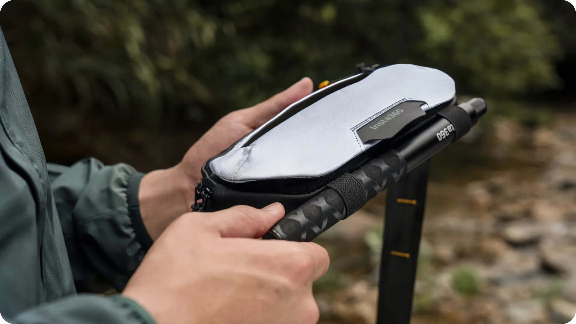 Alt kısımdaki kayışlar özellikle Insta360 selfie çubukları için tasarlanmıştır.